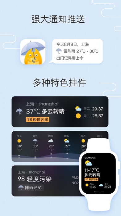 这是一款好用的天气应用。为你提供实时温度、空气质量,十日天气预报,精准分时趋势。强大天气推送,覆盖中国 3000+ 市县、全球200000+ 城市。快来下载体验吧。