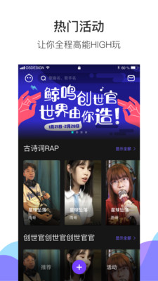鲸鸣app是一款好用的音乐短视频应用,通过音乐让你遇见更好的自己哦,多样的热门活动想唱就唱,优质的音效效果,修音黑科技,让你感受到更好的声音效果哦,欢迎下载体验吧。