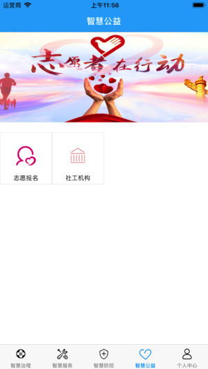 2、通过志愿者服务、服务预约等板块提供包括老人关怀、孩子辅导、残疾人康复等服务预约;