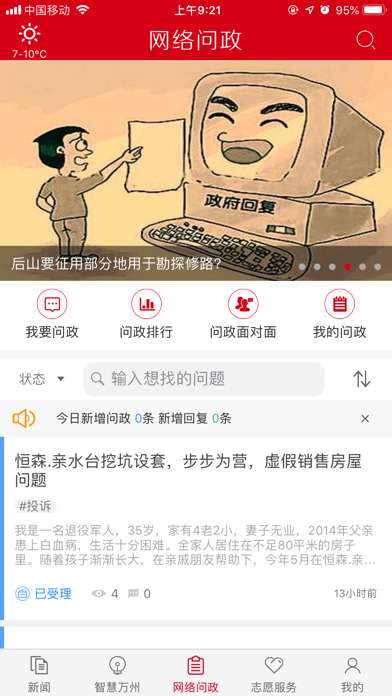 看万州app是一款好用的资讯服务应用,为万州的用户而量身打造,聚合了丰富的本地资讯内容,用户可轻松的通过该应用获悉到本地的一切生活,政务,公共服务等资讯信息哦,快来下载体验吧。