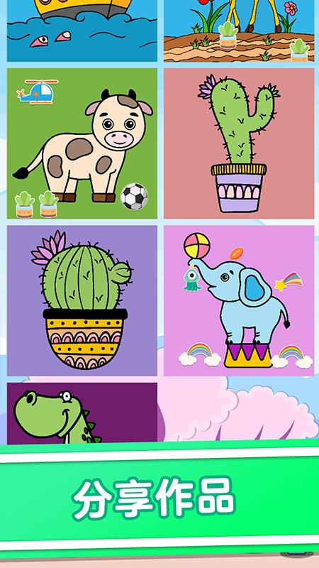 这是一款为儿童而打造的绘画涂色应用。有各种各样的绘画选择,通过绘画涂色来培养孩子的思维能力和感知力,增加培养孩子的绘画兴趣。有需要欢迎下载使用。