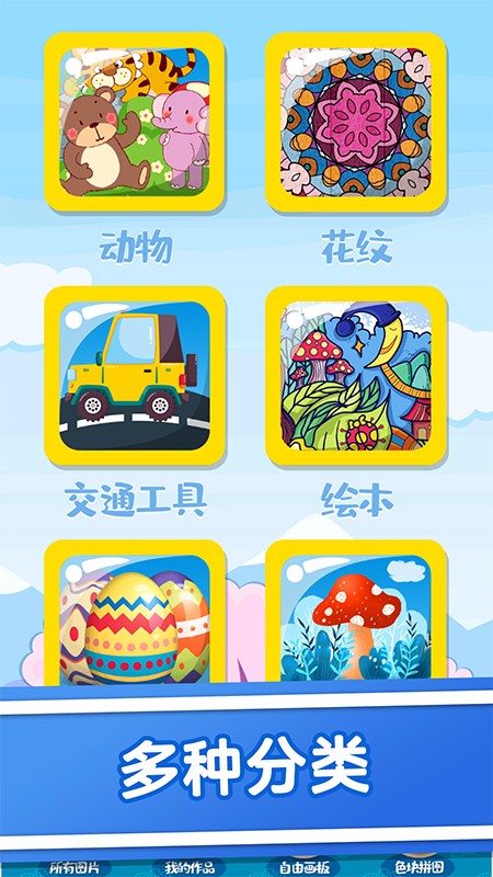 儿童绘图app是一款专为儿童绘画启蒙教育打造的绘画应用,有着非常简易的使用方式,各年龄段的孩子都可轻松上手使用,有着多样的绘画选择,轻松趣味涂色锻炼绘画能力哦,觉得不错的欢迎下载使用吧。