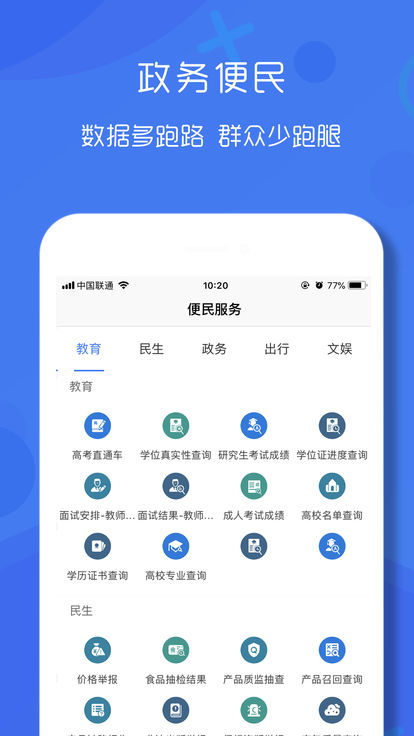 这是一款好用的政务服务应用,提供多种掌上便民服务,让民众足不出户的解决切实生活问题,而一站式整合教育、交通、医疗、政务、综合等多方面的便民服务微应用也是大势所趋,用户只需登录一次便可以使用所有的应用。