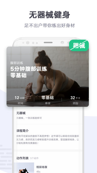 4、丰富的无器械的健身动作轻松在家练出好身材。