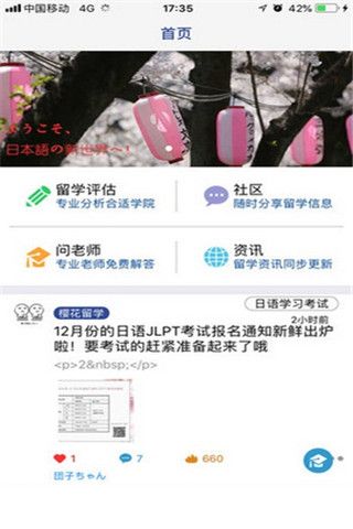 樱花留学是一款针对于日本留学的服务类软件,在软件中大家可以自由的查询日本优质学校以及语言的学习,并且帮助你加入讨论社区实时的进行互动,彻底清除掉地域性的障碍。