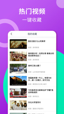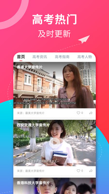 高考视频app是一款集成了众多的高考相关资讯内容的视频应用。用户可通过该应用轻松的了解到众多的有关高考的资讯,各类高校的宣传视频等内容哦。感兴趣的欢迎来下载使用吧。