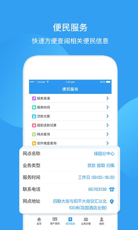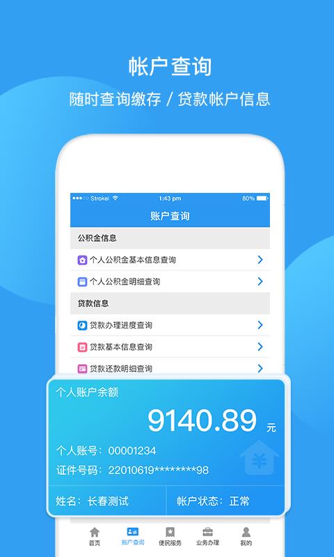 2、快捷查询个人的账户缴存贷款信息;