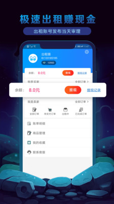 出租猫app是一款专业提供租号服务的平台。为用户提供各类游戏以及影视平台的账号。覆盖了各类主流的游戏。轻松选租靓号,获得不一样的游戏体验哦,喜欢的可以来下载使用哦。