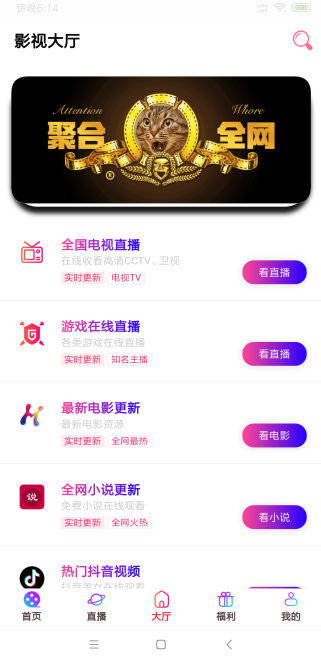 2、全国的电视以及游戏直播轻松看;