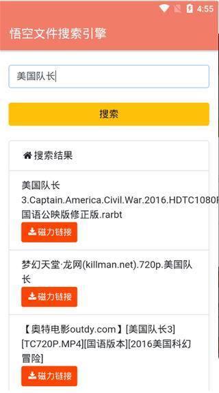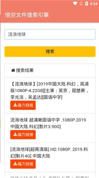 悟空搜索app是一款实用的磁力搜索工具应用。轻松的即可搜索各类资源文件,精准的搜索结果反馈,搜索到你任何的想要的资源文件哦,与下载工具配合使用,轻松高速下载哦,欢迎使用体验。