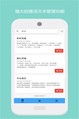 适用于自媒体、记者、广告、在线教育、视频制作、视频简历、培训会议、婚礼祝福、节日祝送等场景,app会自动的进行字幕提示和弹屏提示,显示你的大纲内容,让你的拍摄工作更加的井然有序。
