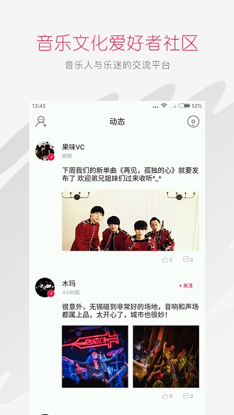 这是一款好用的音乐文化社区应用。轻松在此遇见好音乐哦。为音乐人与乐迷朋友们打造良好的互动交流社区。感受别样的音乐魅力,用音乐拉近你我的距离。欢迎下载使用。