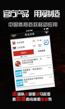 界面重新设计,高大上!增加四大全新功能——视频、图文、数据直播、CBA官方社区;竞猜;玩CBA APP还能赚奖品哦