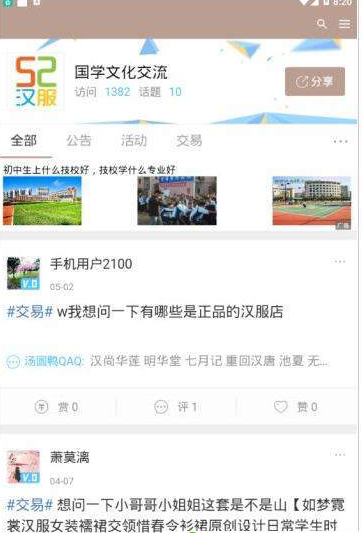 3、了解汉服的起源并展开交流,和爱好者们一起参与话题讨论;