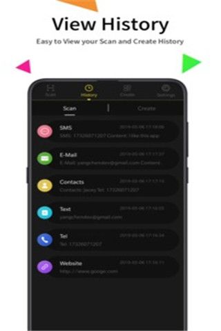 扫码神器识别任何QR码。当读取URL的QR码时,将引导您打开浏览器并直接访问该站点,并且可以设置自动打开浏览器,多方便啊! 您也可以生成不同内容的新QR码。您自己的QR码可以是网址,文本,电话号码,电子邮件,短信,联系人等中的项目。使用私人QR码传输信息更加安全。