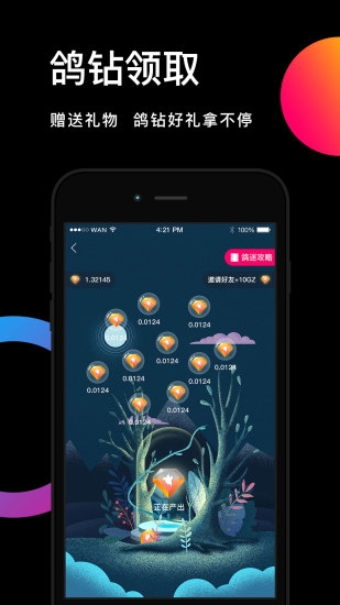 4、通过直播打赏分享视频或是邀请好友都可获得鸽钻。