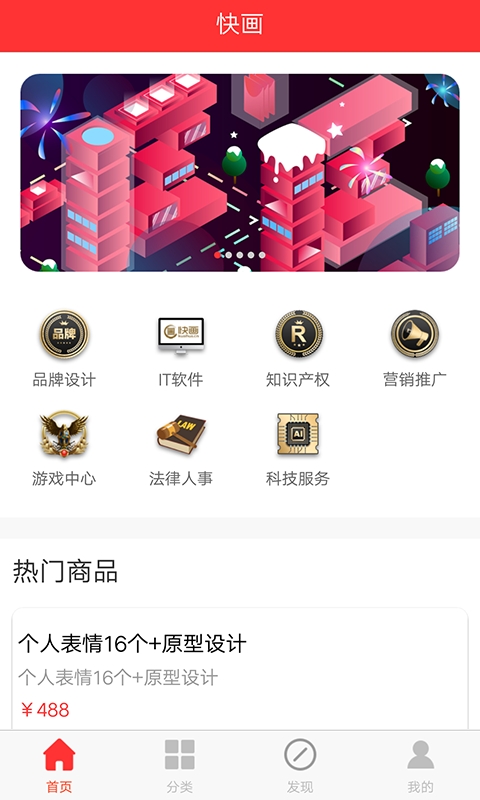 快画app是一款创意设计产出应用。为你提供专业的设计服务,,满足品牌设计,IT软件,知识产权,营销推广,游戏中心,法律人事等多元化的设计需求哦。有需要的朋友可以来下载使用哦。
