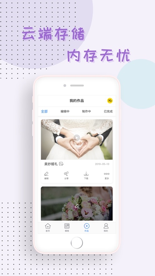 这是一款好用的视频相册制作应用。只需简单三步:选择模板——添加照片、视频素材——制作视频,即可制作出媲美大片的酷炫视频。只要几分钟就可以完成视频制作。赶紧来下载试试吧。