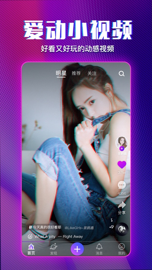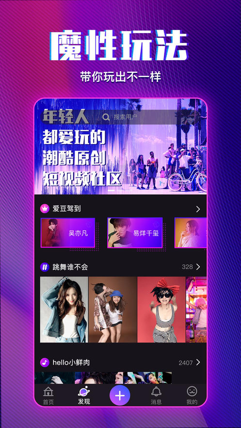 这是一款动感原创小视频分享平台,汇聚好玩又好看的美女、明星、搞笑、创意视频,提供又燃又魔性的挑战玩法,还有跟拍、同框、音乐、特效、美颜等拍摄工具,让你轻松记录精彩瞬间,和好玩的人一起霸占热门!