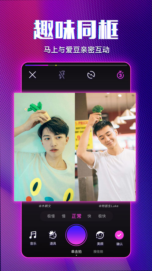 2、趣味的同框拍摄期轻松拍出炫酷的视频;