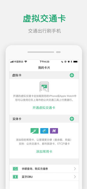 2、可绑定您的常用卡片(支持交通卡、ETC沪通卡、旅游卡),方便您的管理。