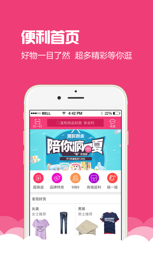 3、超多的购物返利省钱买快速返哦;