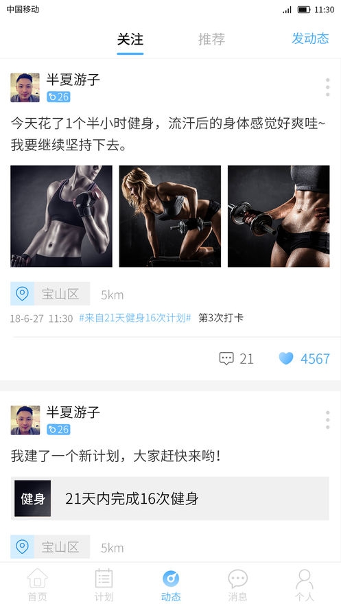 3、记录发布你的运动健身动态与好友共享;