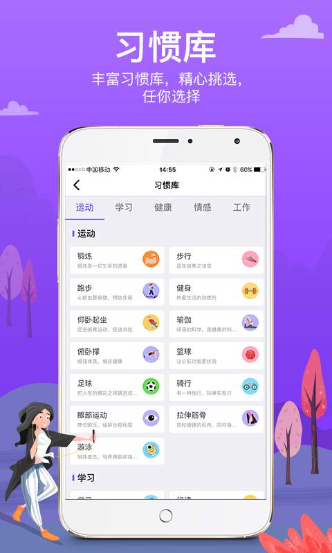 2、丰富的习惯库任你从中进行挑选;