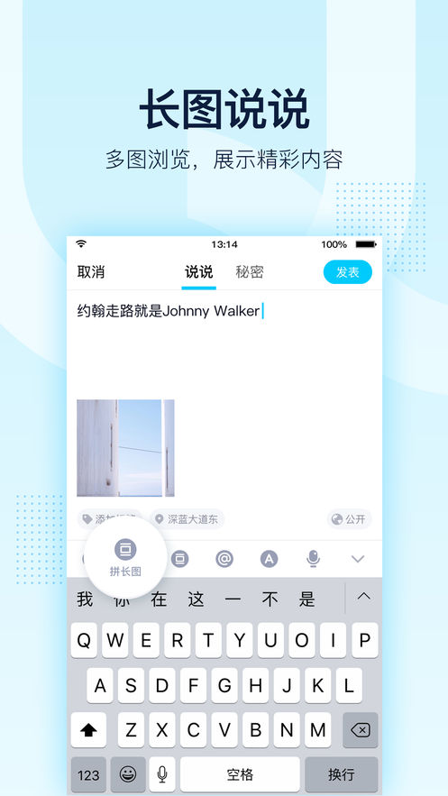 3、说说支持选择发送长图展示更多的内容;