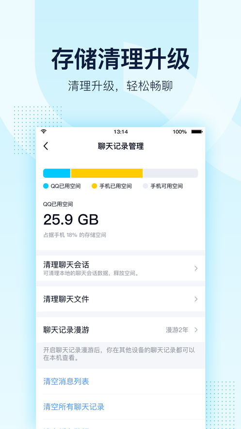 - 储存空间清理能力全新升级,与好友轻松畅聊;