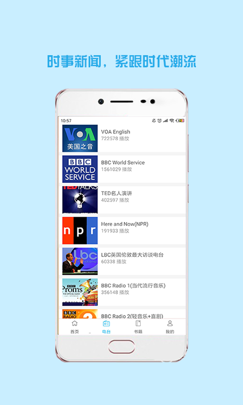 这是一款好用的英语的学习应用。更倾向于英语口语的能力的学习提升。涵盖了时事新闻,电影原声,科技讲解,音乐播放,体育播报,演讲演练以及书本阅读等一系列音频内容哦,有需要的欢迎来下载使用。