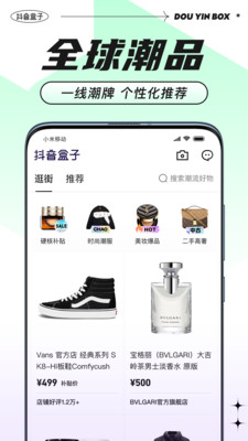 抖音盒子是抖音全新打造的时尚电商平台软件,各类潮品内容是一应俱全,大家可以非常快速的从中来发现自己喜欢的潮物商品,探索更多的潮流趋势,你对于潮流的追求,这款应用都是可以来满足你。