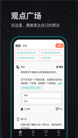 1、软件汇聚了一群见解独特的年轻人,可以探讨一些人生的选择;