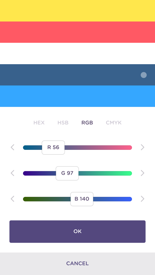 4、支持代码、HSB、RGB等格式便捷收藏你喜爱的颜色。
