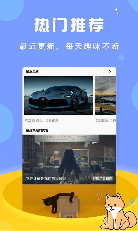 今日短视频app为您精选了来自全球的优质短视频内容,带你领略世界的新奇哦,轻松的从中开拓你的眼界哦。每日为您带来热门内容推荐,尽享视觉的盛宴哦,喜欢的朋友可以来下载使用哦。