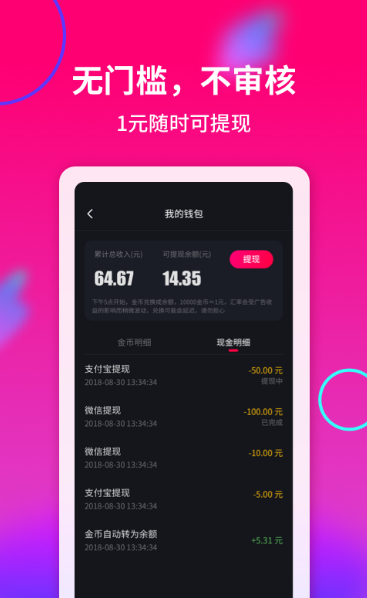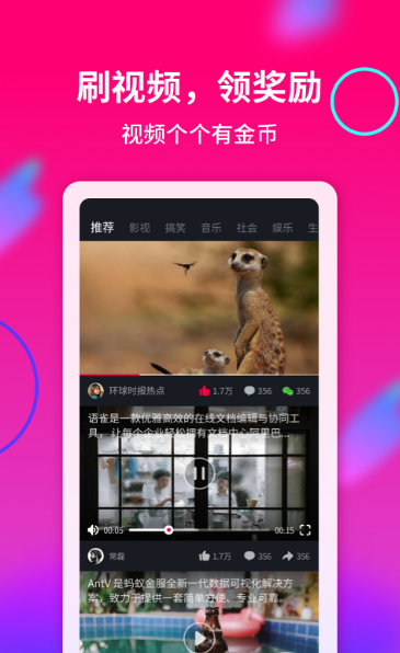 这是一款不错的短视频赚钱应用,通过视频的观看,不但能够派遣你的孤单无聊,还可以获得金币的奖励,让你观看的每个视频都更具价值哦。快来下载试试吧。