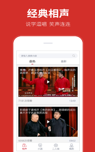 这是一款相声观看应用。为您呈现海量的优质相声资源,小品以及二人转哦,致力为您带去更多的笑点与欢乐哦。喜欢的朋友不要错过了。快来下载使用吧。