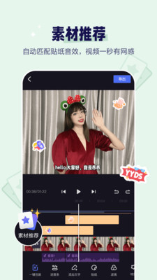 3、智能的为用户们进行了视频素材的推荐,让你得到高效的素材选择,快速添加使用;