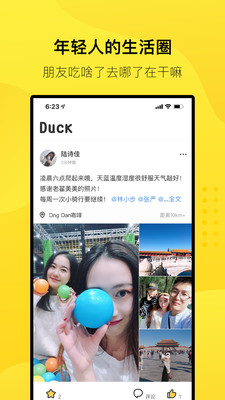 Duck app是一款为年轻人打造的校园社交平台应用,更好的真实做自己。分享你的美好日常生活动态。用照片记录下你的每一次旅程。发现更多的生活的乐趣哦,喜欢的朋友可以来下载使用。