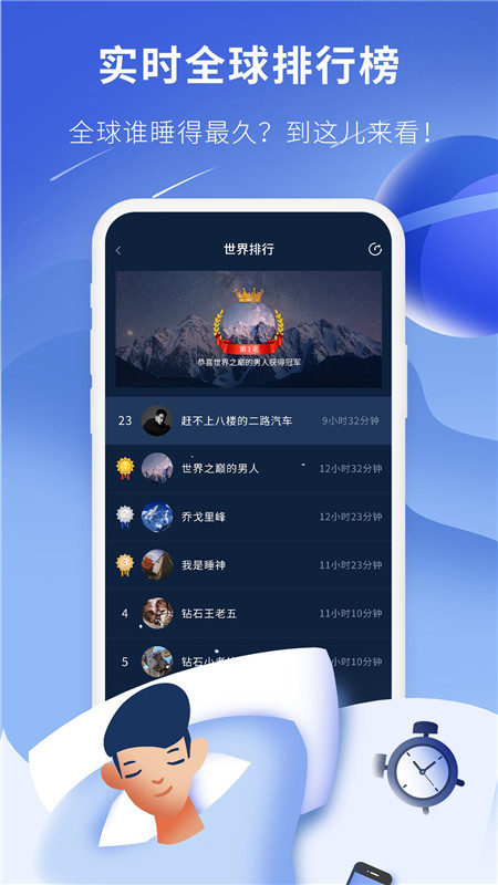 3、睡眠的记录排行榜单看看大伙的睡眠状况;