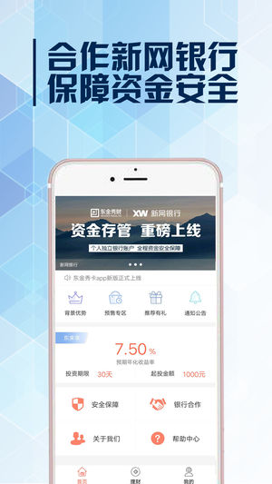 东金秀财app下载,一个专注于为东金会员提供专业财富管理服务的综合性金融资产交易平台,通过与银行展开合作,由银行进行资金存管,实现资金与交易的分析,从而让资金流向更透明,让用户放心投资。