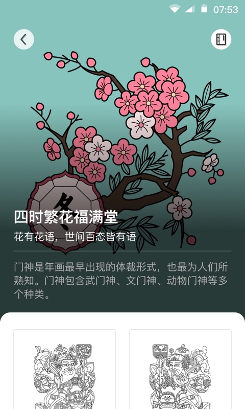 这是一款绘画涂色应用,提供众多的国风绘本线稿图,通过色板的调配,可涂上你喜爱的颜色。创造属于你的涂色作品哦,有兴趣的朋友可以来下载试试哦。