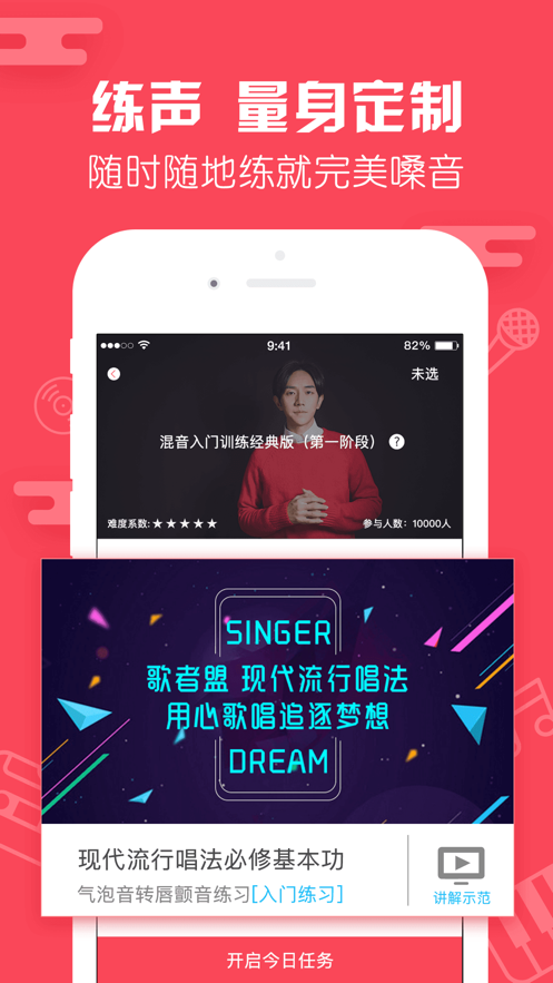 歌者盟学唱歌app是一款能够教你如何学习唱歌的应用,帮助喜爱唱歌的你从零开始学习流行声乐唱法与技巧。提供视频的唱歌技巧讲解,让学习更加的轻松哦,需要的可以来下载使用。