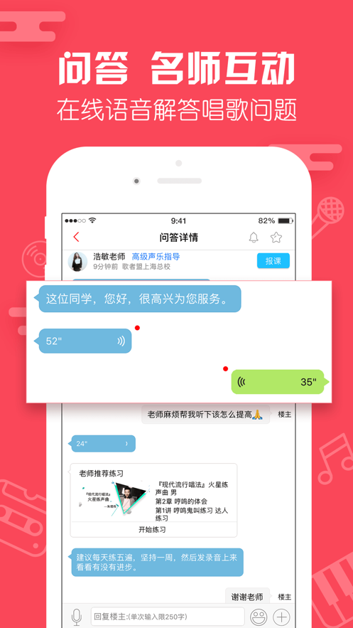 2、提供演唱问答服务专业老师通过语音或是文字给你解答;