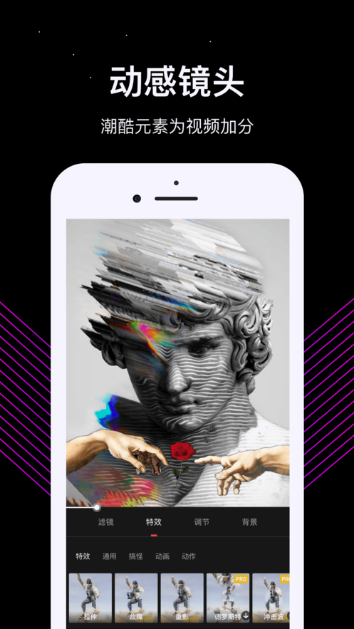这是一款手机视频编辑制作应用,新奇创意的拍摄玩法、好莱坞式的FX特效、意境多变的滤镜主题,更有专业电影制作功能!欢迎来下载使用哦。