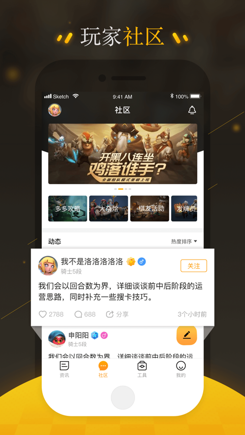 掌上自走棋app是由多多自走棋专为玩家朋友们打造的一款游戏社区服务应用,玩家们可使用该应用便捷的进行游戏的战绩查询,与众多的玩家朋友们在社区进行互动的讨论哦,有需要的可以来下载使用。