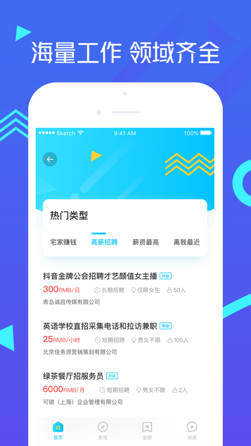 1、覆盖多样的工作领域海量的工作职位可选;