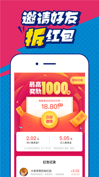 4、邀请好友轻松领取奖励,拆开红包即可赢大奖。