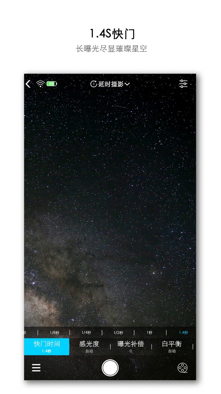 在APP上一键下载,分享视频至抖音、微博、微信,秒变点赞收集器。画质完美呈现,在任何屏幕上都能体验到的超高清视觉盛宴。提供多场景选择:自动、云彩、城市夜景、星空、日出日落、鲜花、手动,拍出大片简直so easy!