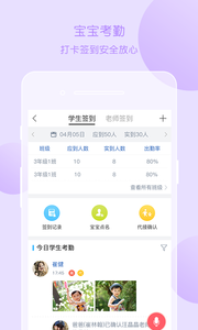 将宝宝在打卡签到、人脸识别签到的照片,实时推送给家长,全方位保障幼儿安全。